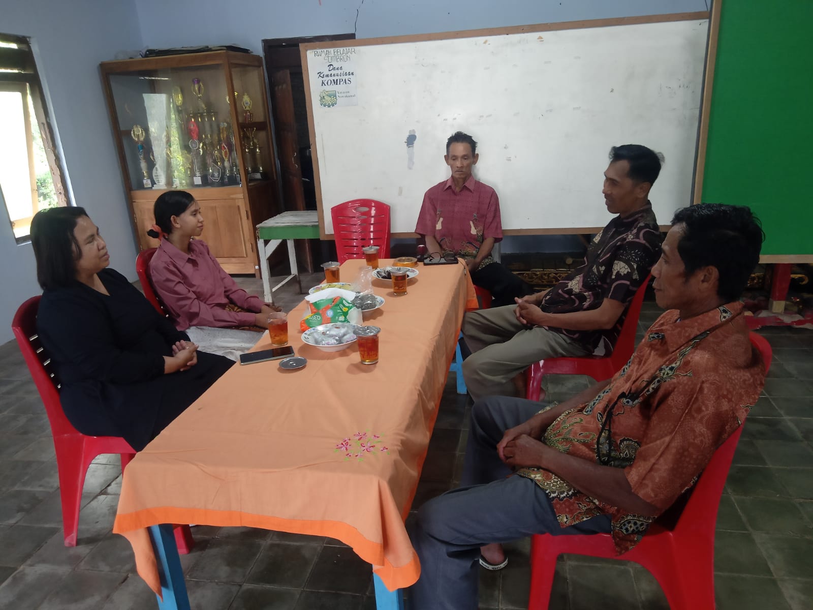 Ibu Dian, mewakili PLTA Timo, hadir langsung dan menyerahkan bantuan kepada panitia. Turut hadir dalam pertemuan itu Ketua Panitia Merti Dusun, Jarman; Bendahara Panitia; Kepala Dusun Sombron; serta dua anggota panitia lainnya. Meski dalam lingkup sederhana, pertemuan berlangsung hangat dan penuh rasa syukur.